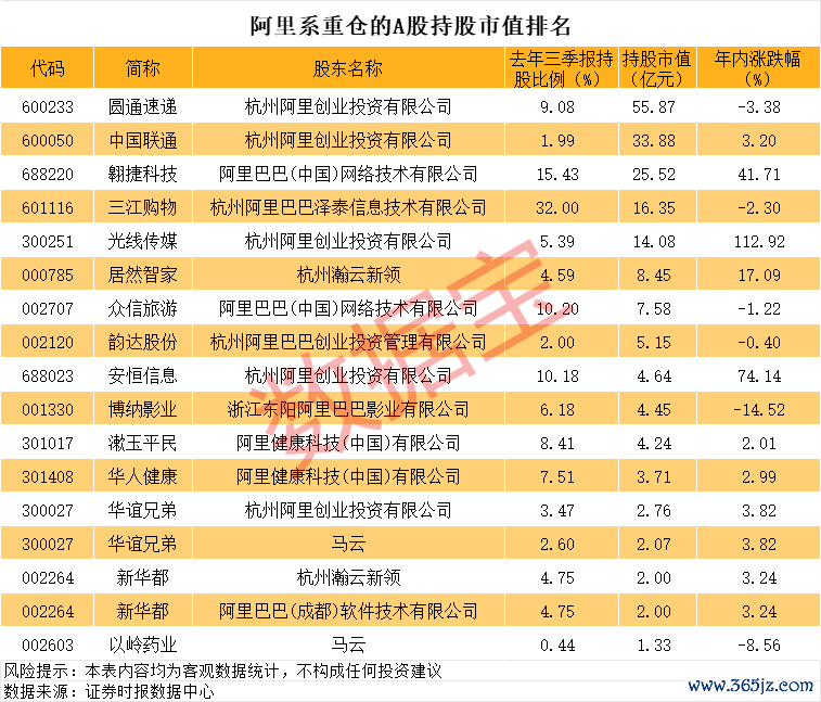 阿里巴巴暴涨,马云、阿里重仓的A股名单曝光阿里巴巴暴涨,马云、阿里重仓的A股名单曝光