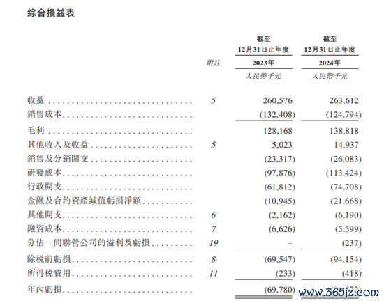 招股书显示,在过去的2023年、2024年,大医集团的营业收入分别人民币2.60亿、2.64亿,相应的净亏损分别为人民币6,978.0万、9,457.2万元。