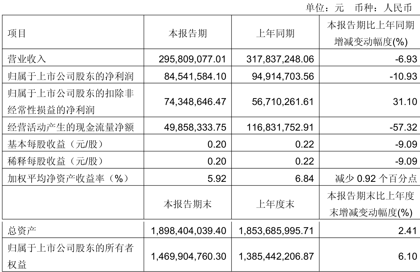 中证智能财讯卫信康(603676)4月26日披露2025年第一季度报告。公司实现营业总收入2.96亿元,同比下降6.93%;归母净利润8454.16万元,同比下降10.93%;扣非净利润7434.86万元,同比增长31.10%;经营活动产生的现金流量净额为4985.83万元,同比下降57.32%;报告期内,卫信康基本每股收益为0.2元,加权平均净资产收益率为5.92%。