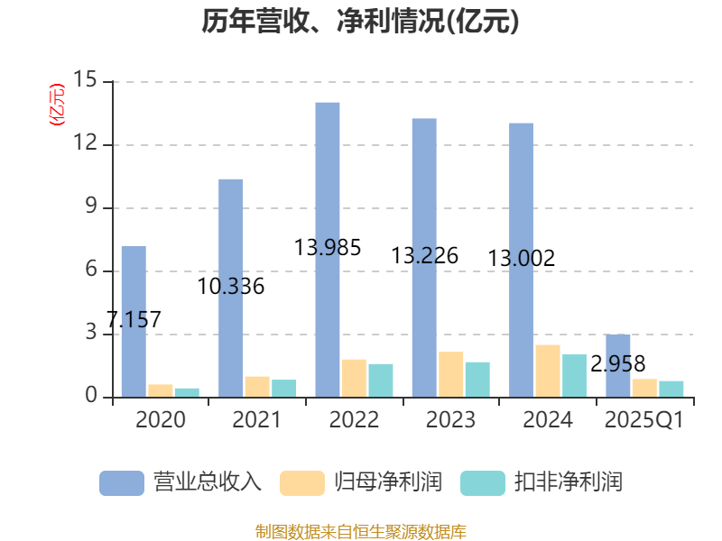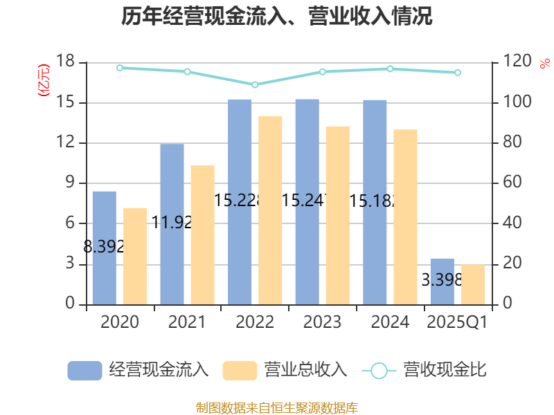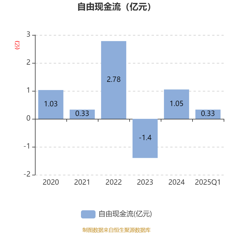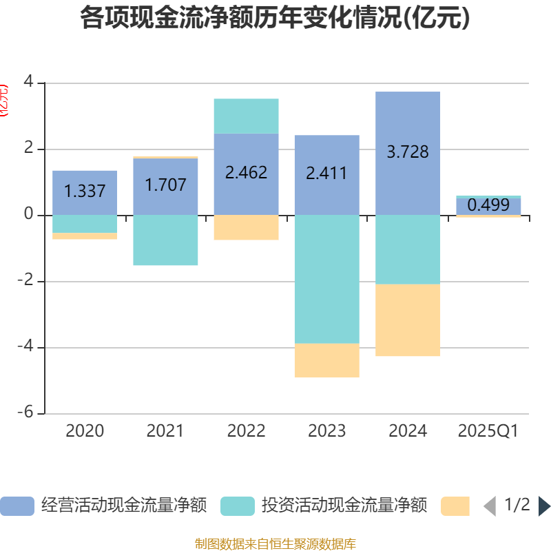 截至2025年一季度末,公司经营活动现金流净额为4985.83万元,同比下降57.32%;筹资活动现金流净额-768.32万元,同比减少431.71万元;投资活动现金流净额835.12万元,上年同期为-2963.02万元。