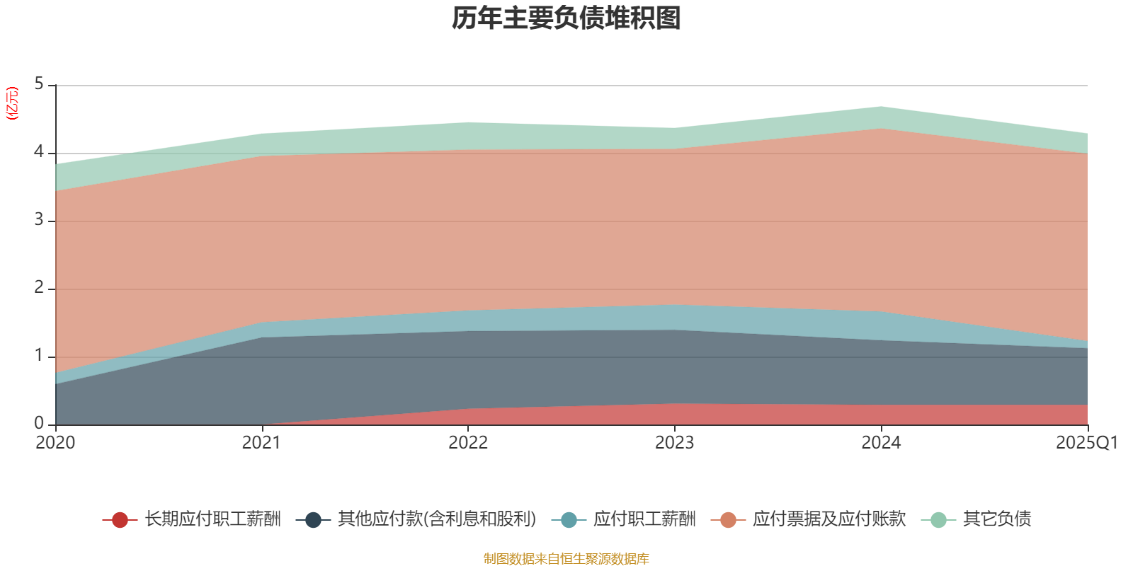 负债重大变化方面,截至2025年一季度末,公司应付职工薪酬较上年末减少74.64%,占公司总资产比重下降1.72个百分点;其他应付款(含利息和股利)较上年末减少12.22%,占公司总资产比重下降0.73个百分点;合同负债较上年末减少47.52%,占公司总资产比重下降0.19个百分点;应交税费较上年末增加33.73%,占公司总资产比重上升0.15个百分点。