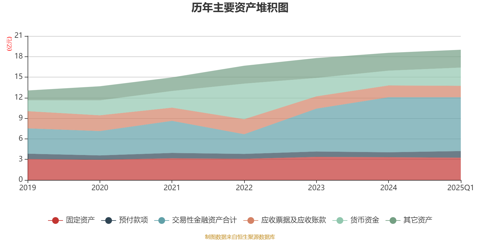 资产重大变化方面,截至2025年一季度末,公司货币资金较上年末增加23.32%,占公司总资产比重上升2.38个百分点;交易性金融资产合计较上年末减少2.24%,占公司总资产比重下降1.97个百分点;预付款项较上年末增加35.52%,占公司总资产比重上升1.24个百分点;固定资产较上年末减少2.25%,占公司总资产比重下降0.82个百分点。