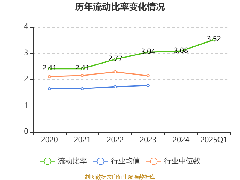 2025年第一季度,公司流动比率为3.52,速动比率为3.4。