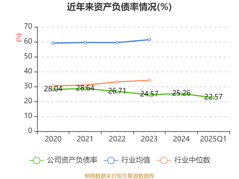 盈利能力方面, 2025年一季度公司加权平均净资产收益率为5.92%,同比下降0.92个百分点。公司2025年第一季度投入资本回报率为5.87%,较上年同期下降0.88个百分点。